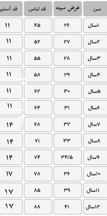 جدول سایز؟عکس‌ها را ورق بزنید،جدول سایز در ردیف عکس‌ها قرار دارد